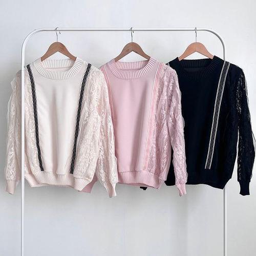 Makone 메쉬 레이스 니트 블라우스