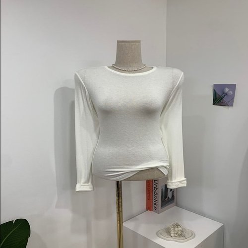 (브링썸/당일출고!!, 허얇골넓핏!) 페미닌 슬림핏 굴림 허리셔링 반폴라긴팔티