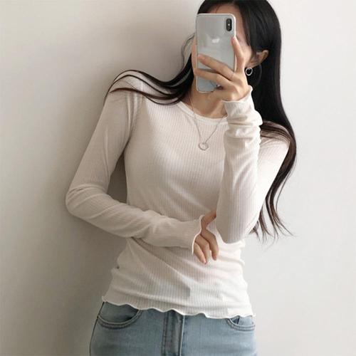 [옷자락] 여자 시스루 슬림핏 롱슬리브 날라리 골지 이너 티셔츠