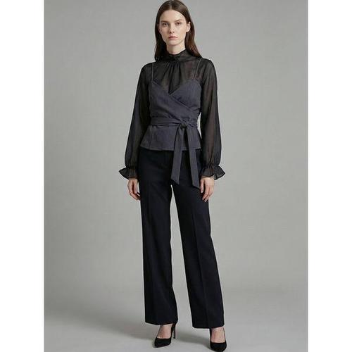 [샵앤]국산 여성 반목 시스루 프릴 하객룩 블라우스 SIU-WBL-21018-블랙