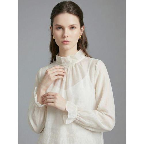 [샵앤]국산 여성 반목 시스루 프릴 하객룩 블라우스 SIU-WBL-21018-아이보리