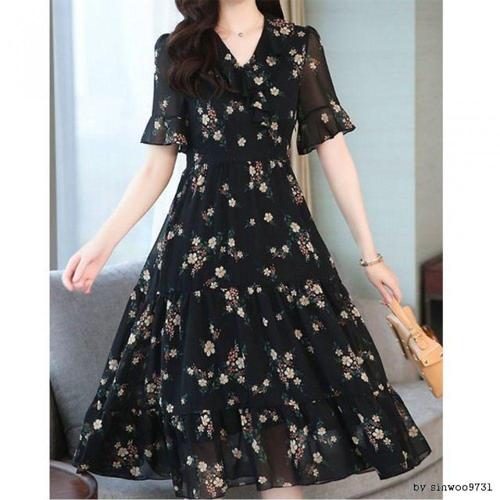 [오너클랜]인기상품 시스루 프릴 반팔 여성 플라워 패턴 데이트 원피스 [WFLLIYG_260305]