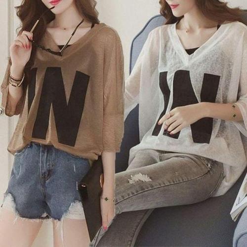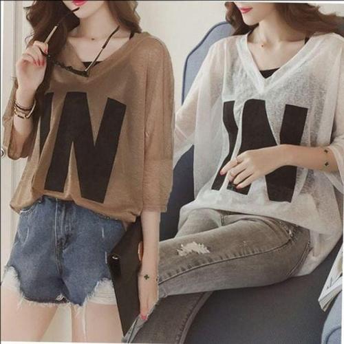 CWTT5090 시원한 여름 시스루 티셔츠 여름반팔셔츠 루즈핏반팔