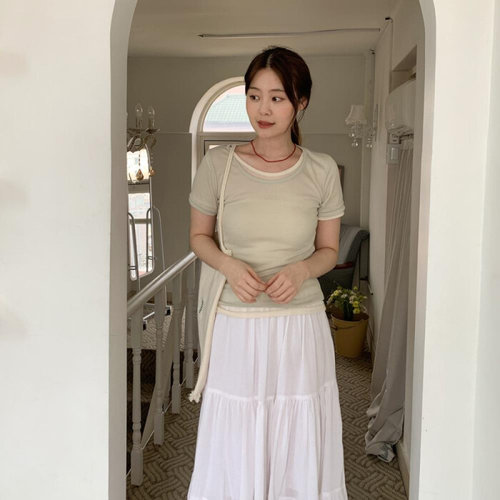 [마쟈]반하이넥 시스루 레이어드 반팔 티셔츠