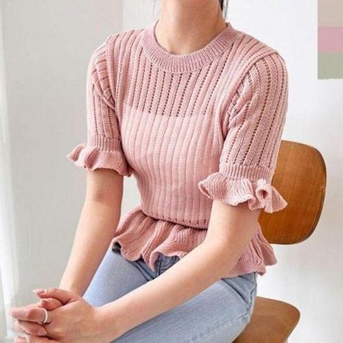 [에이치플러스몰]여자 베이직 여름 프릴 반팔 올데이 니트 1P 시스루