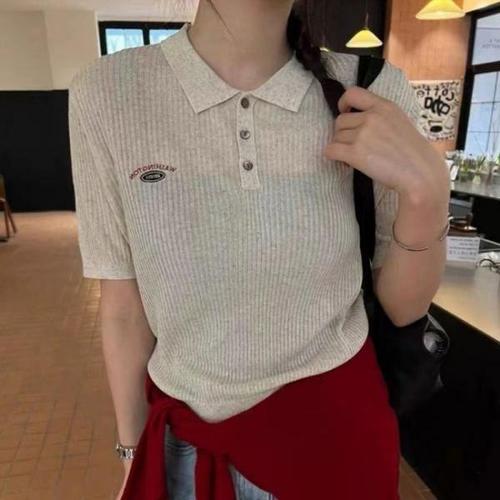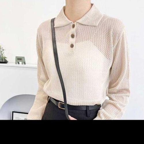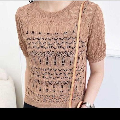 [에이치플러스몰]시스루 여성 골지반팔 니트 봄 여름 반팔카라니트티