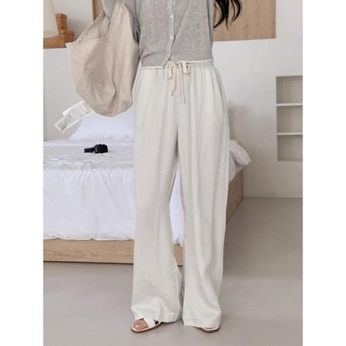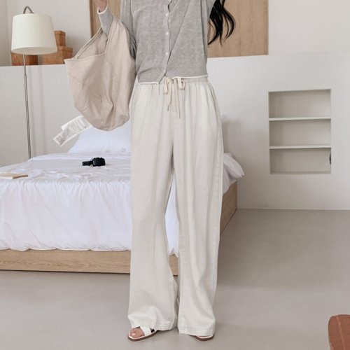 여성 허리밴딩 하늘하늘 시원한 와이드핏 통 팬츠 SIU-WPT-4284-아이보리