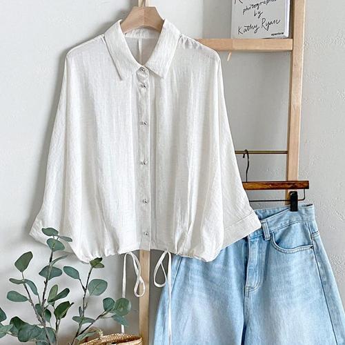 [샵앤][샵앤] 여성 카라 얇고 시원한 하늘하늘 7부 블라우스 BONG-WBL-4509-아이보리