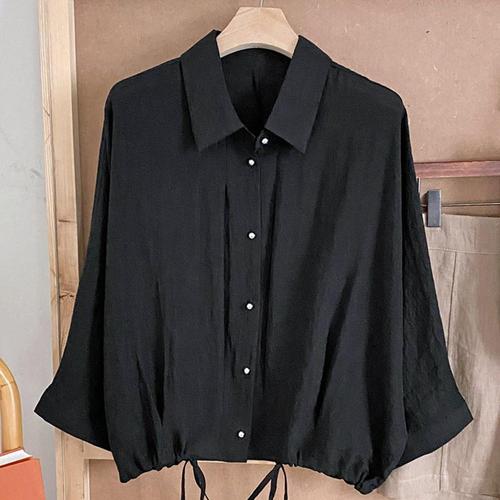 [샵앤][샵앤] 여성 카라 얇고 시원한 하늘하늘 7부 블라우스 BONG-WBL-4509-블랙