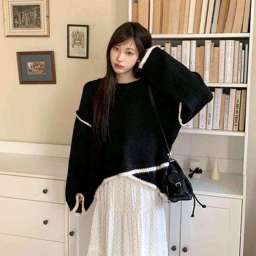 [시크블랙]무아린 배색 라인 루즈핏 니트