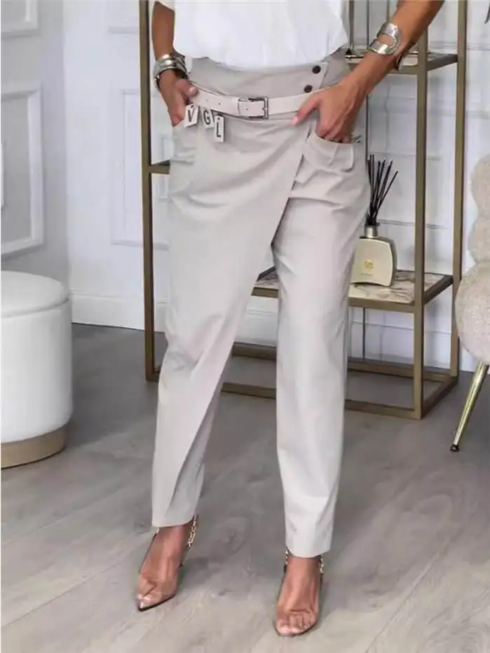 높은 허리 여성 정장 바지 사무실 숙녀 하렘 연필 바지 한국 패션 바지 캐주얼 버튼 느슨한 여성 카키 바지 새로운