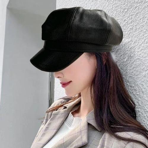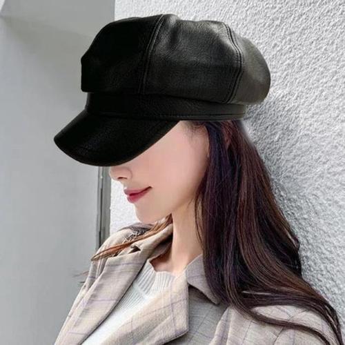 [주식회사 브이와이][JHQRLJ5J_4B]올블랙 시크한 캐주얼모자 패션 레더 느낌 (24115323A)