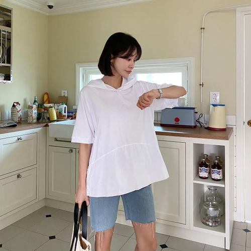 [리엘라]신디나 반원 옆트임 단추 후드 티셔츠