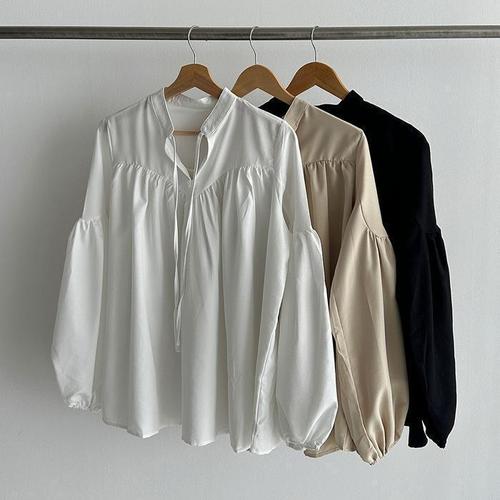 [다잇템]여자 들러리룩 잔주름 벌룬 큰사이즈 블라우스 (41223352A)
