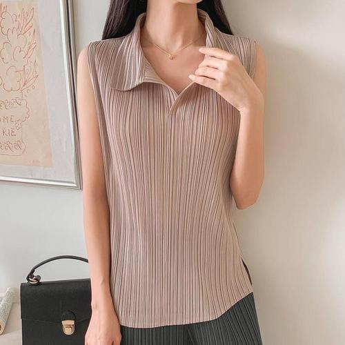 [다잇템]여성 오픈넥 주름옷 실버세대 큰사이즈 나시 (19355569A)