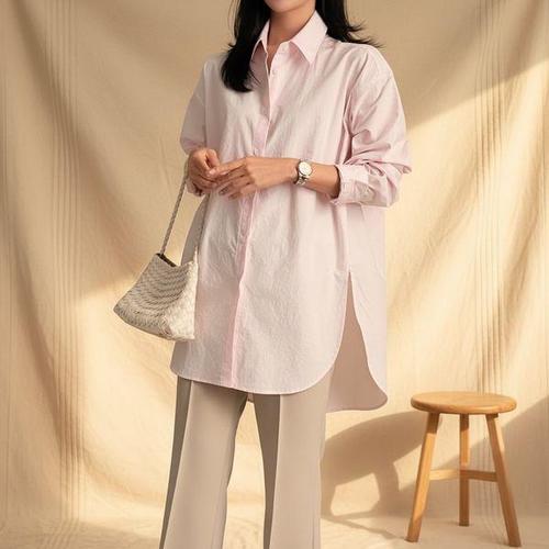 [다잇템]여성 언발카라 큰사이즈 면원단 워싱 롱셔츠
