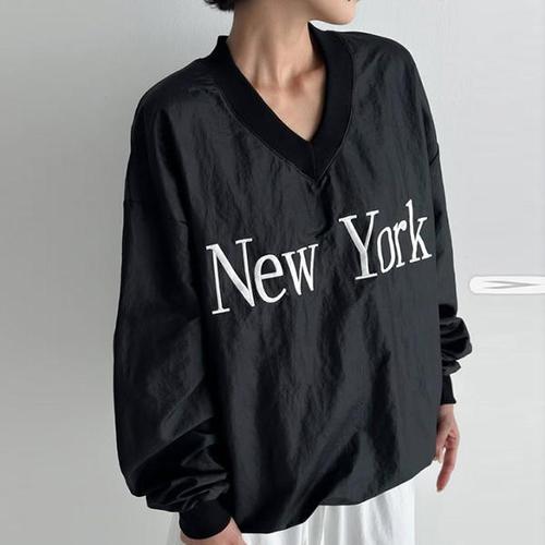 [어바웃탑]V넥 뉴욕 레터링 바스락맨투맨