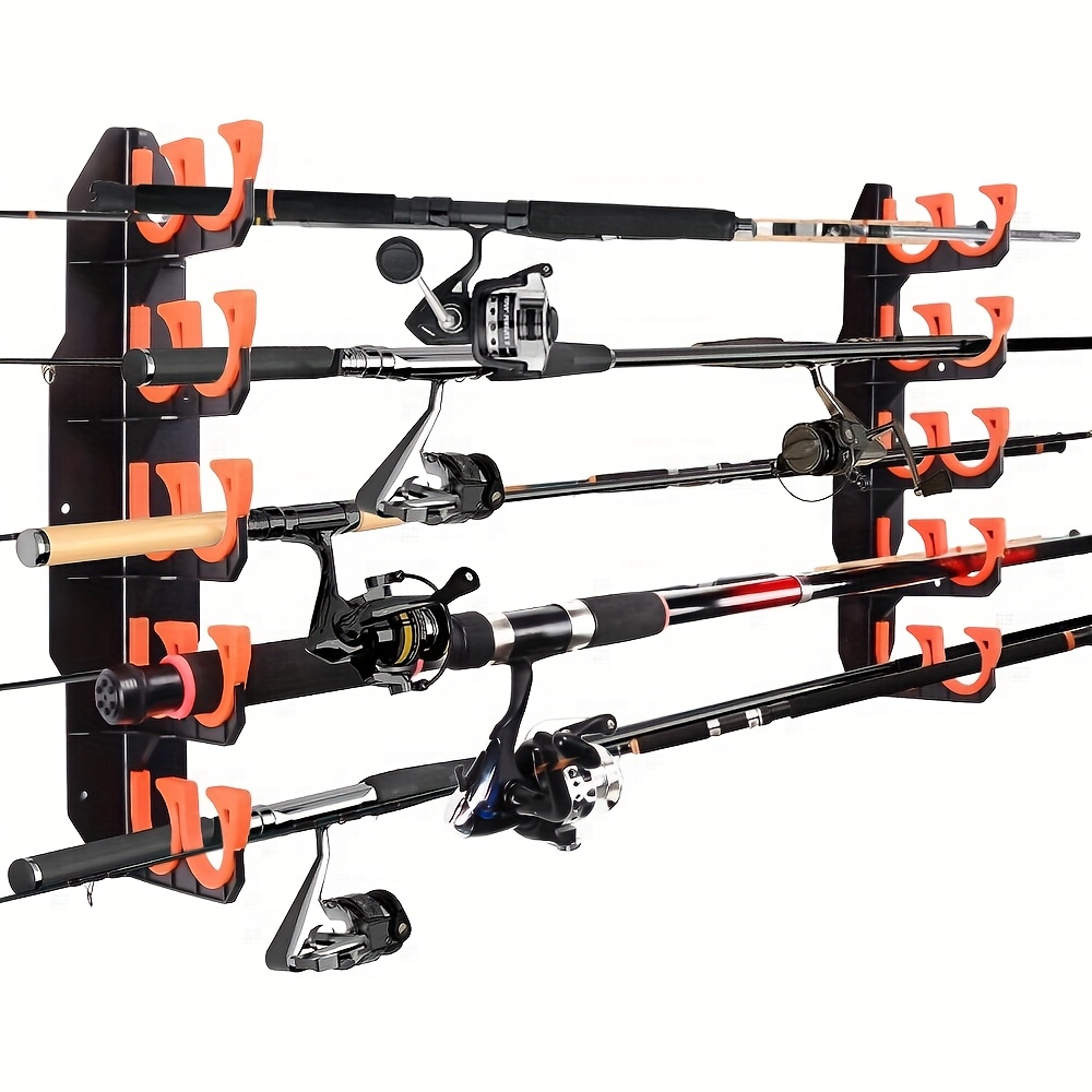 TEMU 8개 다기능 낚시대 홀더 세트 - 휴대용 고탄력 내구성 오렌지 및 블랙 액세서리, 해변, 차량, 벽 장착에 적합 - 충격 흡수 디자인, 지면 삽입 고정, 분리 가능한 보호|낚시대