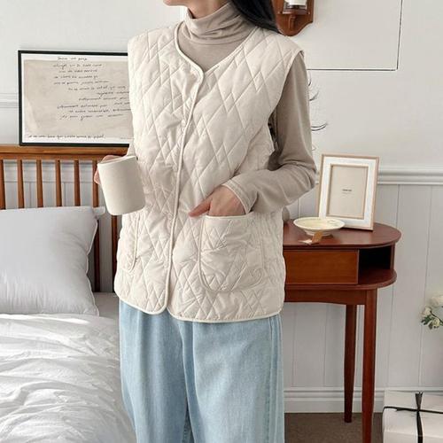 [주식회사 브이와이][JHQRJFPX_4B]2컬러 겨울 퀄팅디테일 실내 이너 패딩조끼 (24054181A)