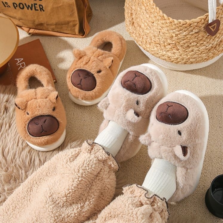카피바라 캐릭터 털실내화 겨울 털안감 실내화 사무실 거실 슬리퍼 극세사 보온 방한