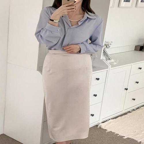 [옷자락]여성 데일리 오피스 블라우스 쉬폰 긴팔 실키