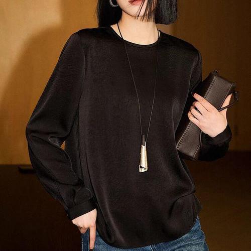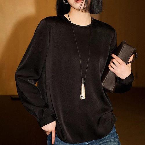 블라우스 광택 새틴 셔츠블라우스 실키 카라셔츠남방 F007596_루즈핏