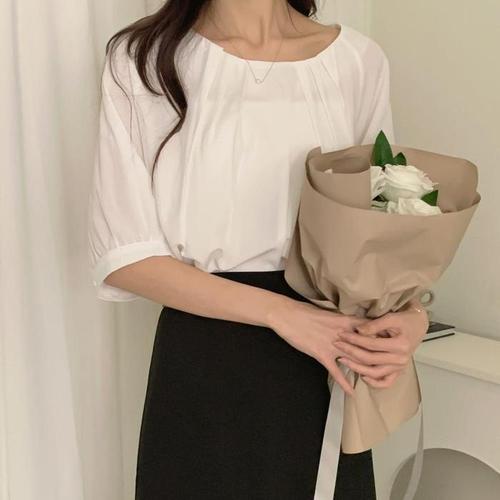 [다잇템]여자 봄여름 들러리 실키한 흰색 블라우스 (12518574A)