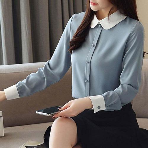 TKX 여성용 고급스러운 블라우스 오피스룩 긴소매 심플 배색 단아한 면접