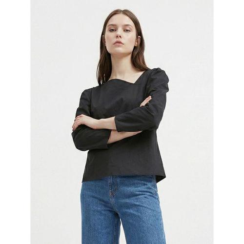 [샵앤]여성 사선 절개 퍼프소매 심플 면100 블라우스 EAN-WBL-21095-블랙