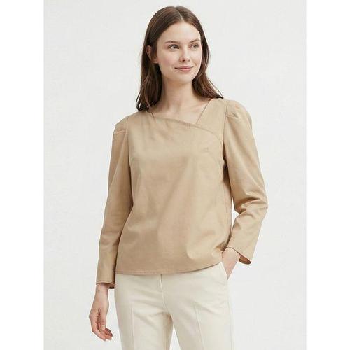 [샵앤]여성 사선 절개 퍼프소매 심플 면100 블라우스 EAN-WBL-21095-베이지