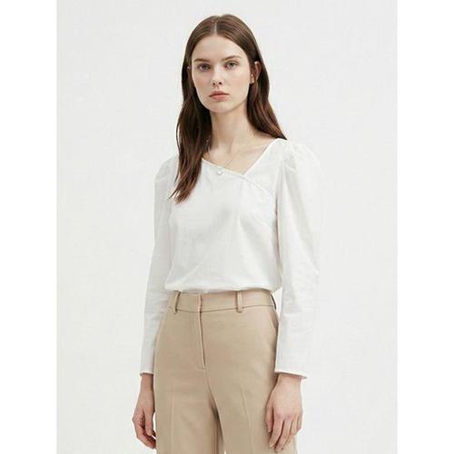 [샵앤]여성 사선 절개 퍼프소매 심플 면100 블라우스 EAN-WBL-21095-아이보리
