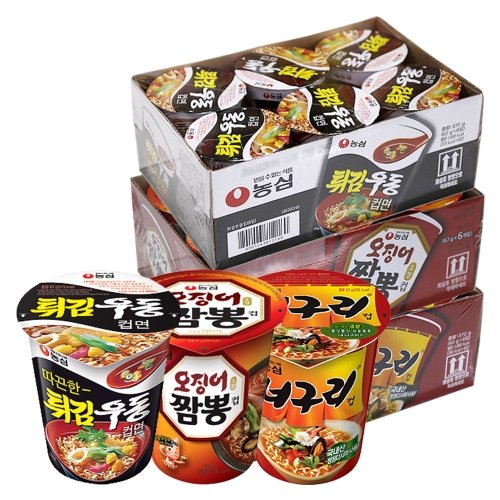 [농심] 컵라면 소컵 18입(튀김우동6입+오징어짬뽕6입+너구리6입)