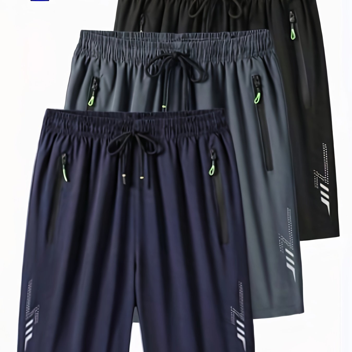 TEMU 남성용 아이스 실키 섬유 원단 5인치 여름 반바지 3개 세트, 달리기, 하이킹, 해변용 스타일리시하고 시원한 아우터웨어, 얇은 속건성 통기성 반바지, 루즈핏 단색 캐주얼 아웃도어 스포츠 반바지