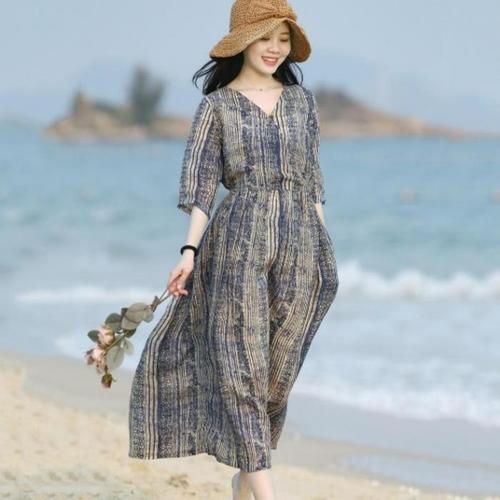 [브이와이][VY] 여자 SS 마원단 모시 반소매 트립 동남아 롱원피스_16431246_588847
