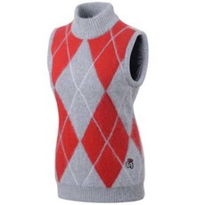 듀빅 여성 라운드 변형 아가일 니트 조끼 DD3WSV271CM