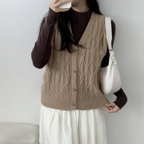[다잇템]여자 피셔맨 가을데이트룩 V넥 아가일 니트조끼 (20618699A)