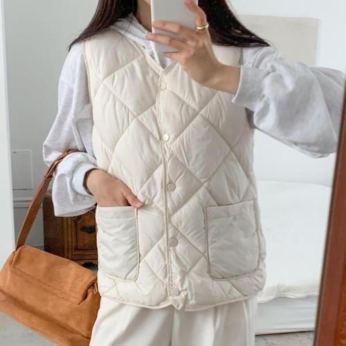 [다잇템]여자 누빔 더블포켓 클래식 아가일 패딩조끼 (23448662A)