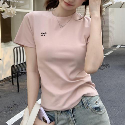 [셀럽하우스]리본자수 WPWV2059 소프트 베이비핑크 반팔티