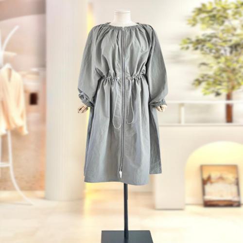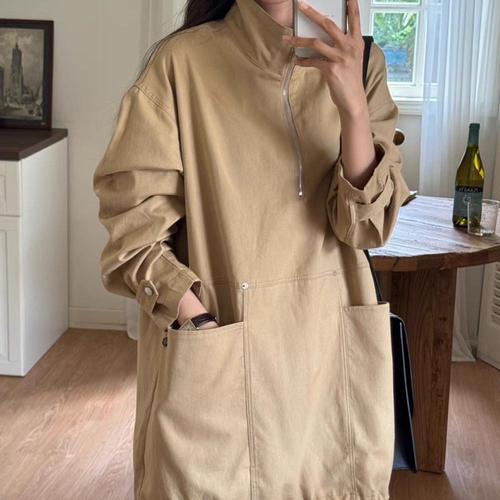 |CDO5406|여성 반집업 카라 아노락 스트링 소매 긴 원피스