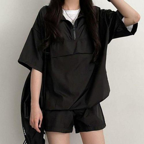 여성 아노락 반팔 상하세트 반바지 트레이닝 세트 데일리 캐주얼