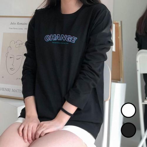 [험블][험블] 체인지 레터링 루즈핏 베이직 긴팔 면 티셔츠 (6227808A)