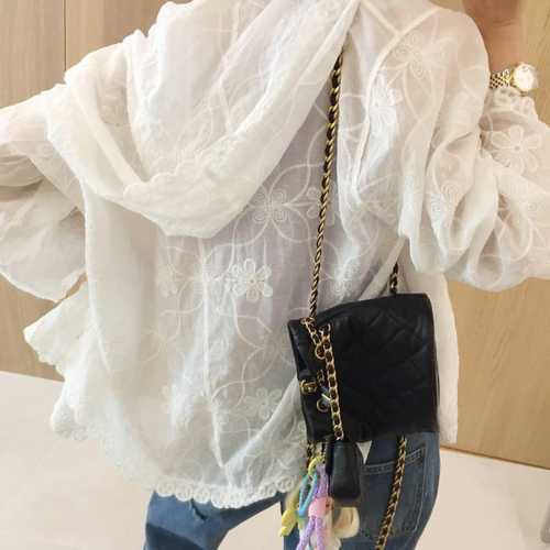 시럽 플라워 자수 루즈핏 코튼 후드 가디건 블라우스 (2color)