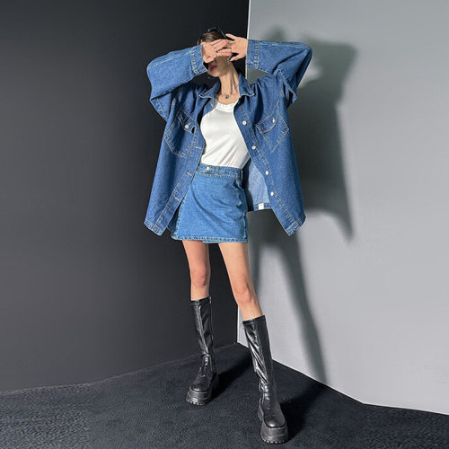 러블리감성 / 가을옷 오버핏 청남방 청치마 투피스 세트