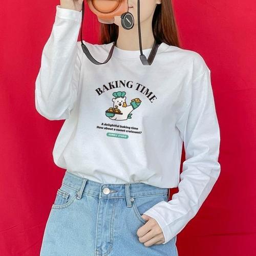 [험블][험블] 베이킹타임 캐릭터 프린팅 라운드 봄 가을 긴팔티 (8009030A)