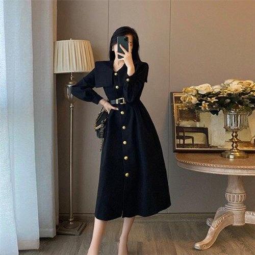 [아리엘스타일]블랙원피스 골드버튼 하객룩 아발로롱원피스