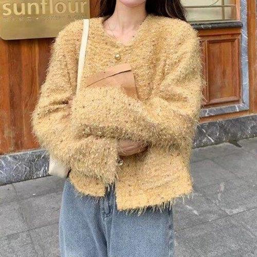 핫핑 [기본버전] 아리엘_기본ver 노카라 루즈핏 트위드 자켓