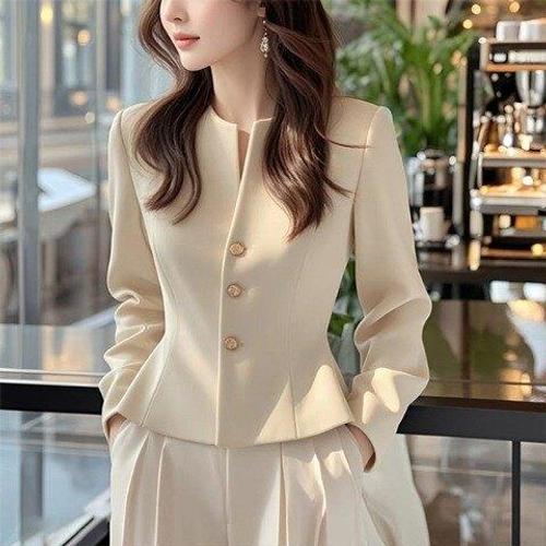 [아리엘스타일]노카라자켓 골드버튼자켓 세련실루엣 코모아이자켓