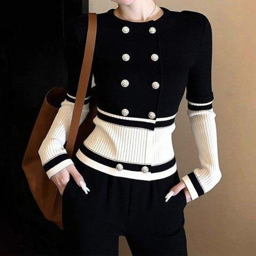 [아리엘스타일]스트라이프니트 골드버튼슬림핏 세일러무드룩 더마린