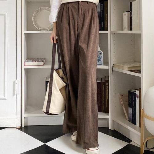 [다잇템]여자 아메카지 백밴딩 골덴 투턱 와이드핏 바지 (18836910A)