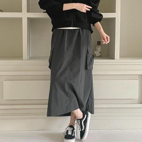 [다잇템]여자 SS 아메카지 카고치마 고무줄 롱스커트 (12443242A)